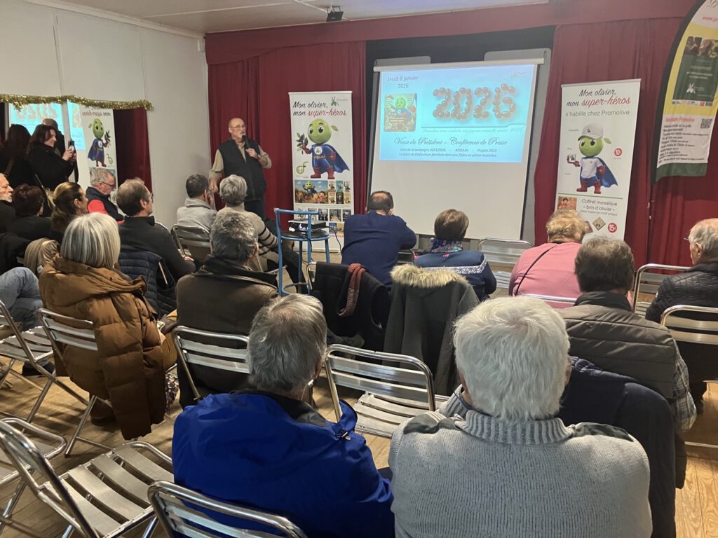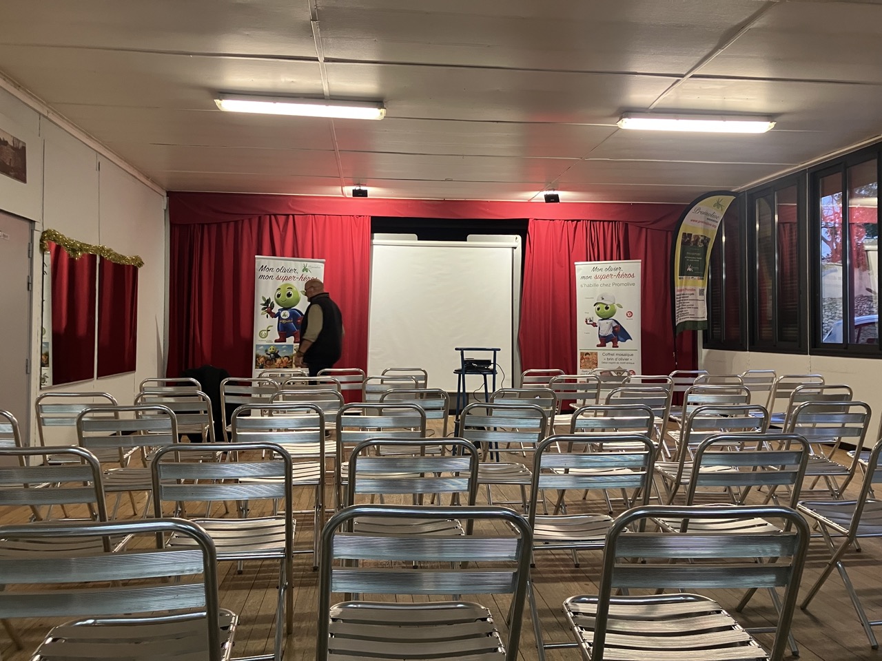 Suivi de la soirée avec le bilan de la dernière campagne et des activités de Promolive dans les établissements scolaires. Préparation de la salle. Les adhérents ont pu récupérer leur huile d’olive également.